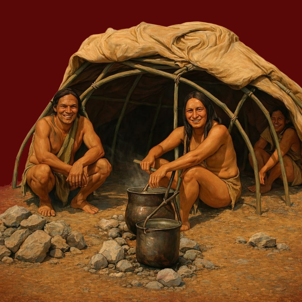 Cantos tradicionales lakota, el sonido del tambor, el silbido de las piedras calientes, el aroma de las hierbas medicinales, la sabiduría de los ancestros y el contacto con la tierra. Un sauna natural donde el fuego, el agua, la tierra y el aire se unen en oración. Es hora de purificarse, es hora de volver a ser niños. «A ho, Mitakuye Oyasin» en todas mis relaciones.