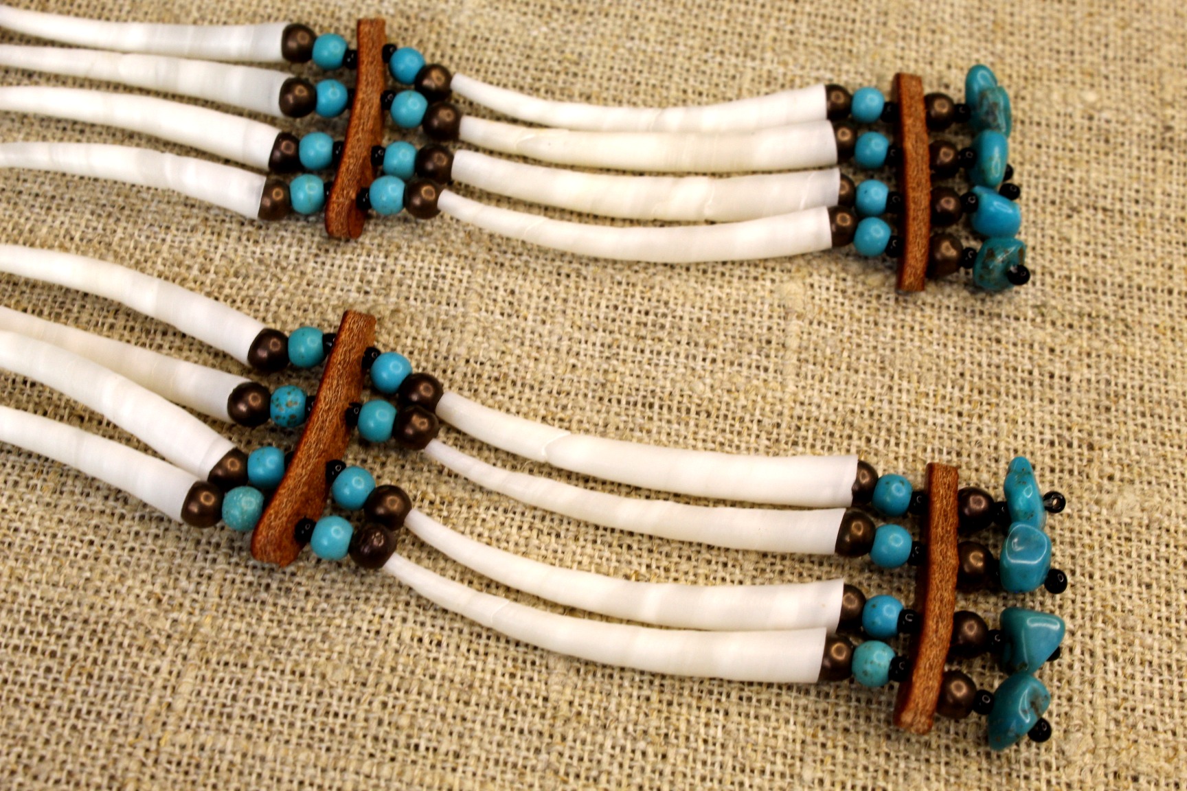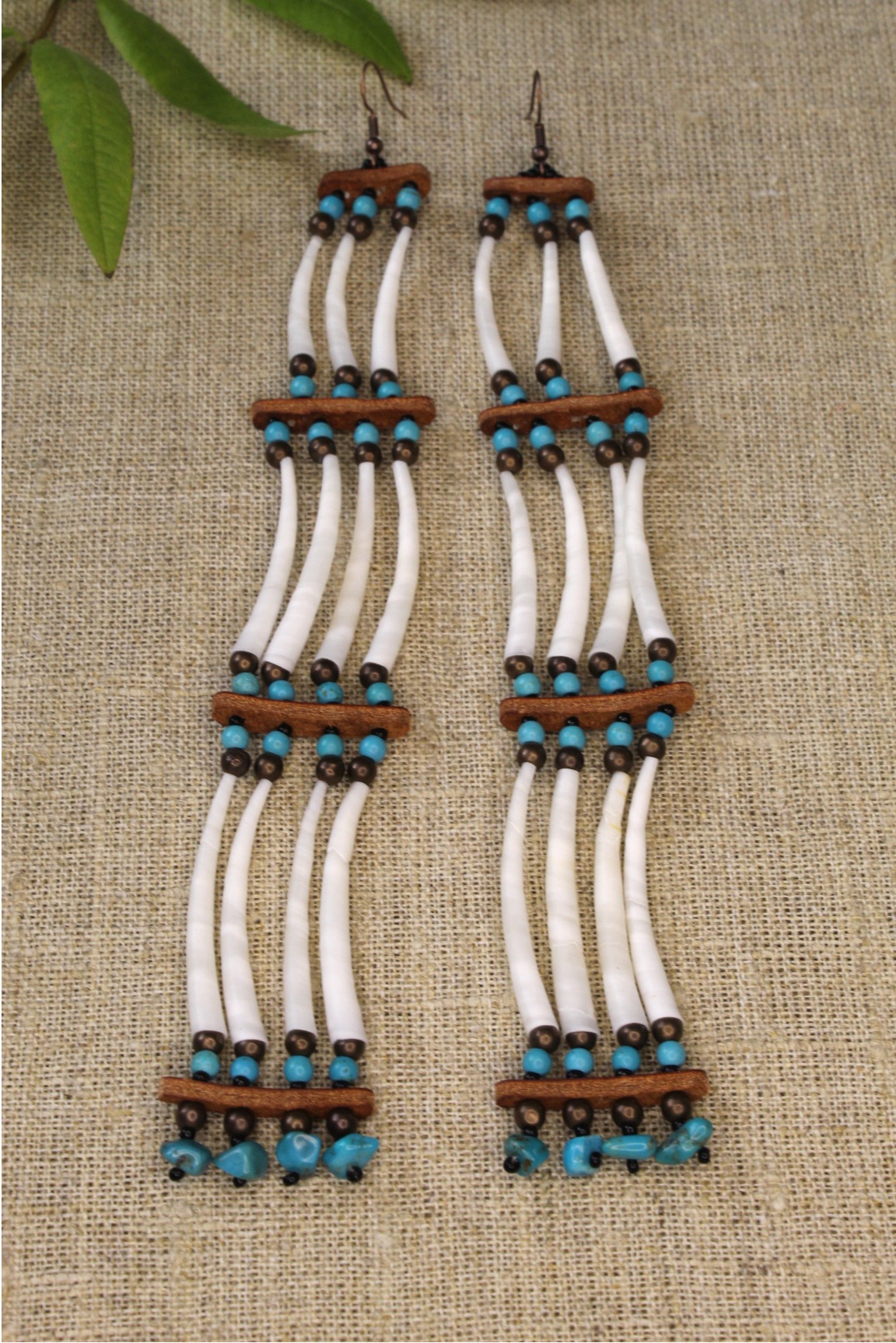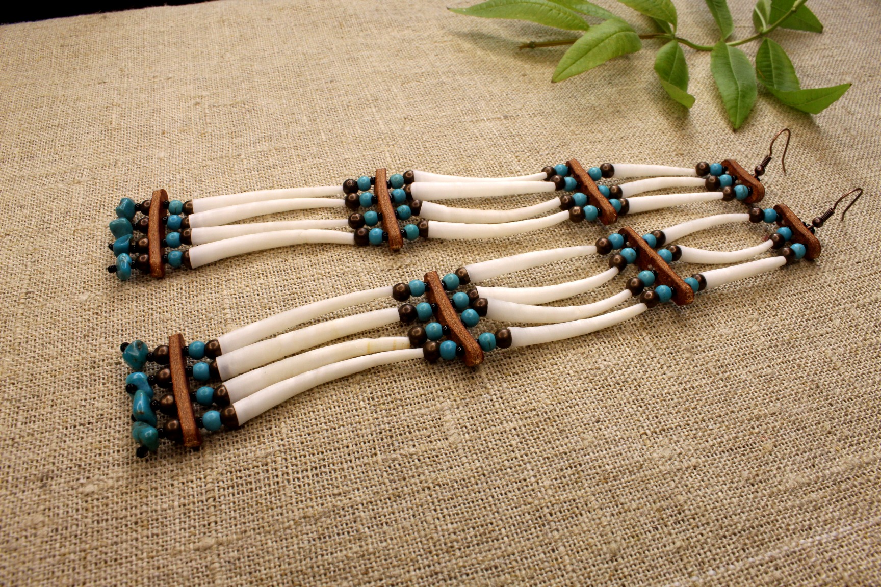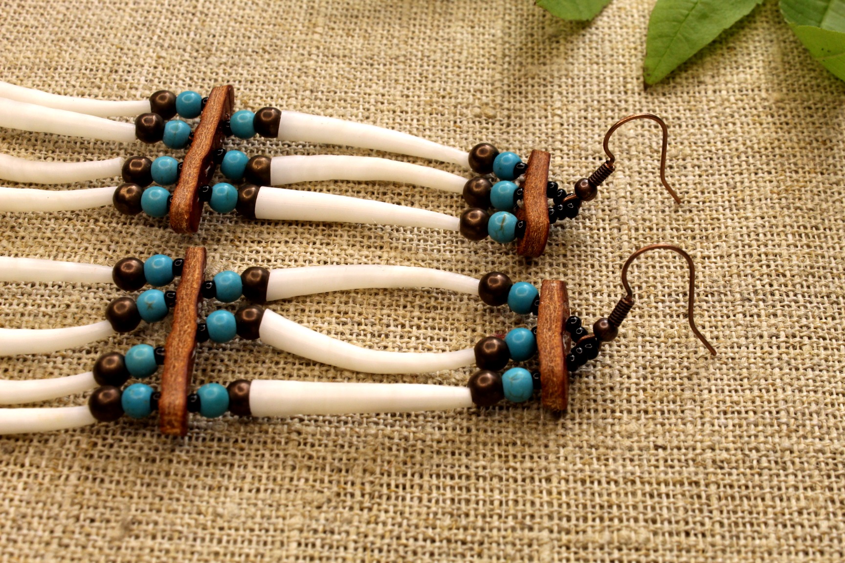 Traditional native style dentallium shell earrings. Measures with hook 19×3 cm.