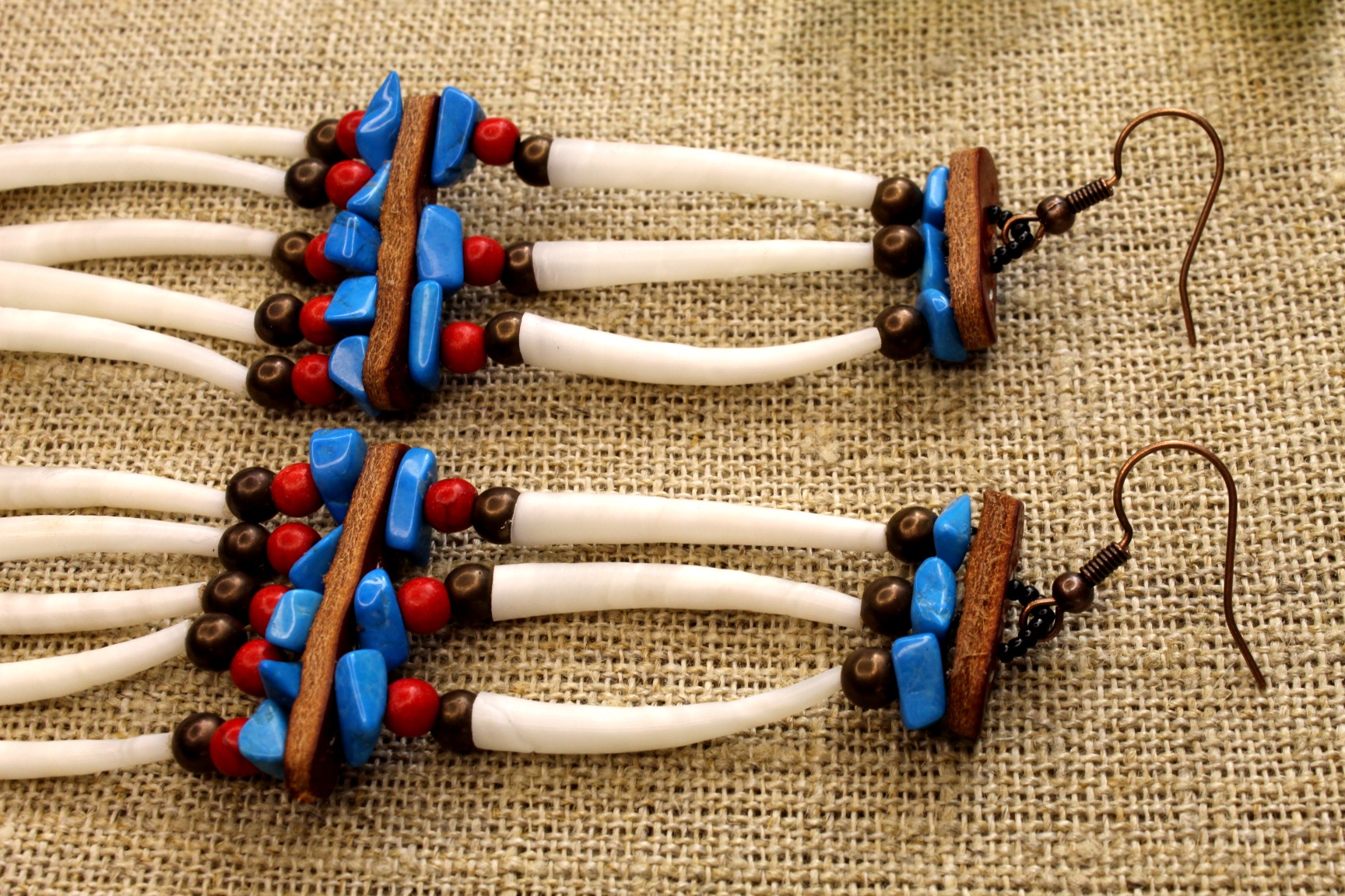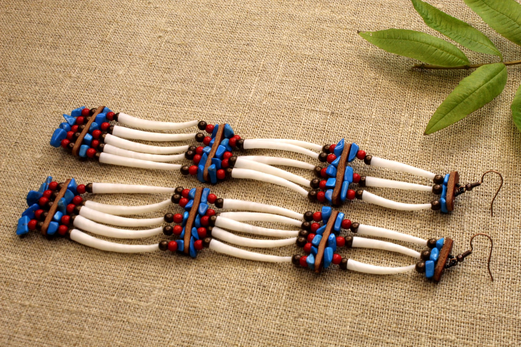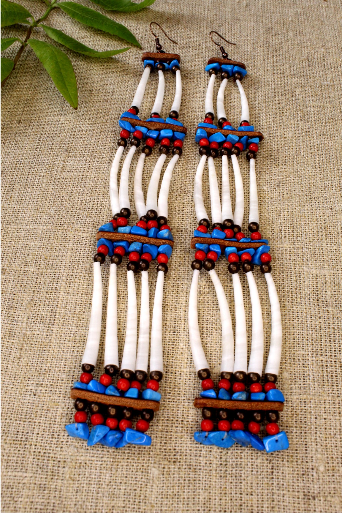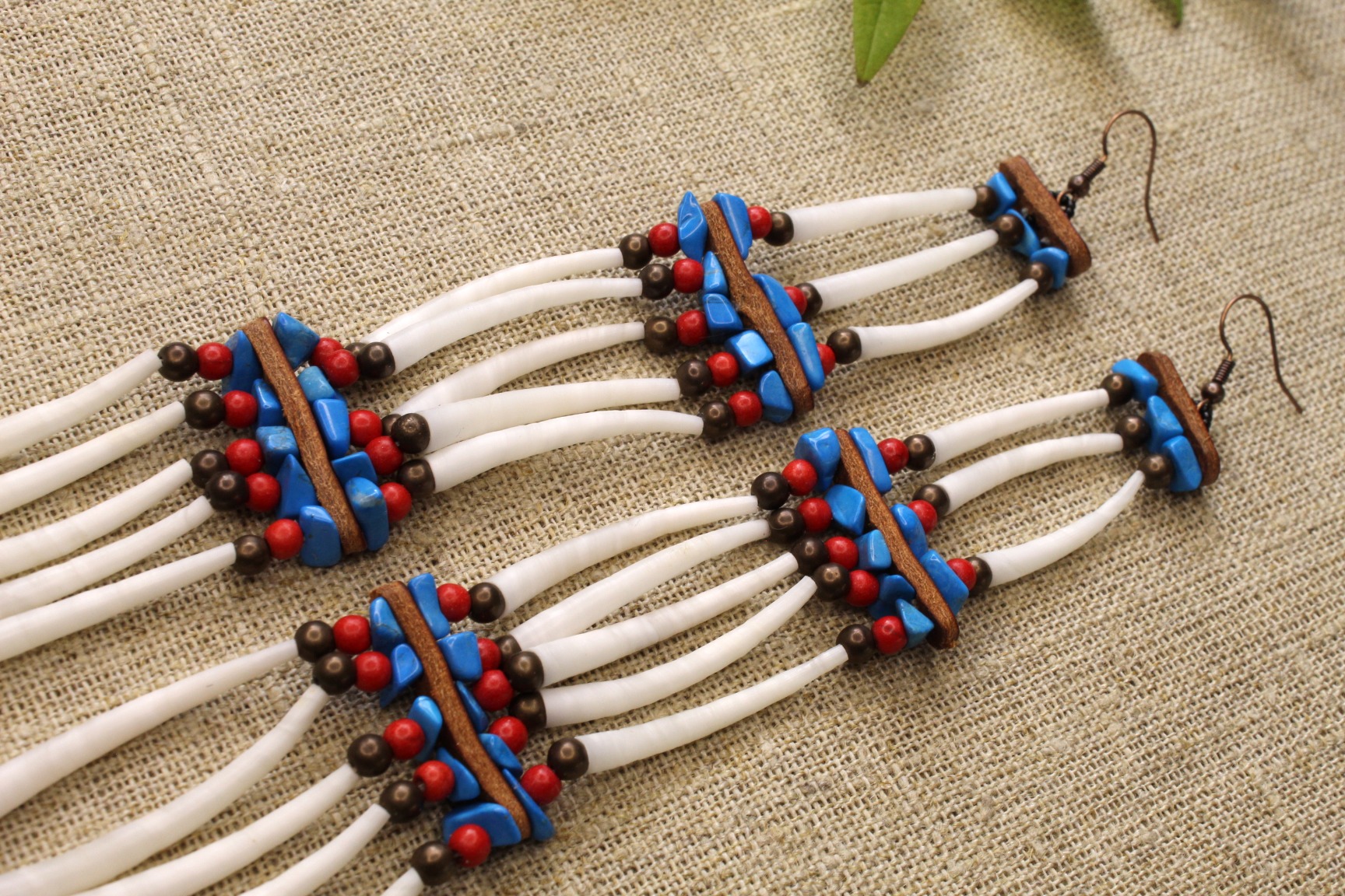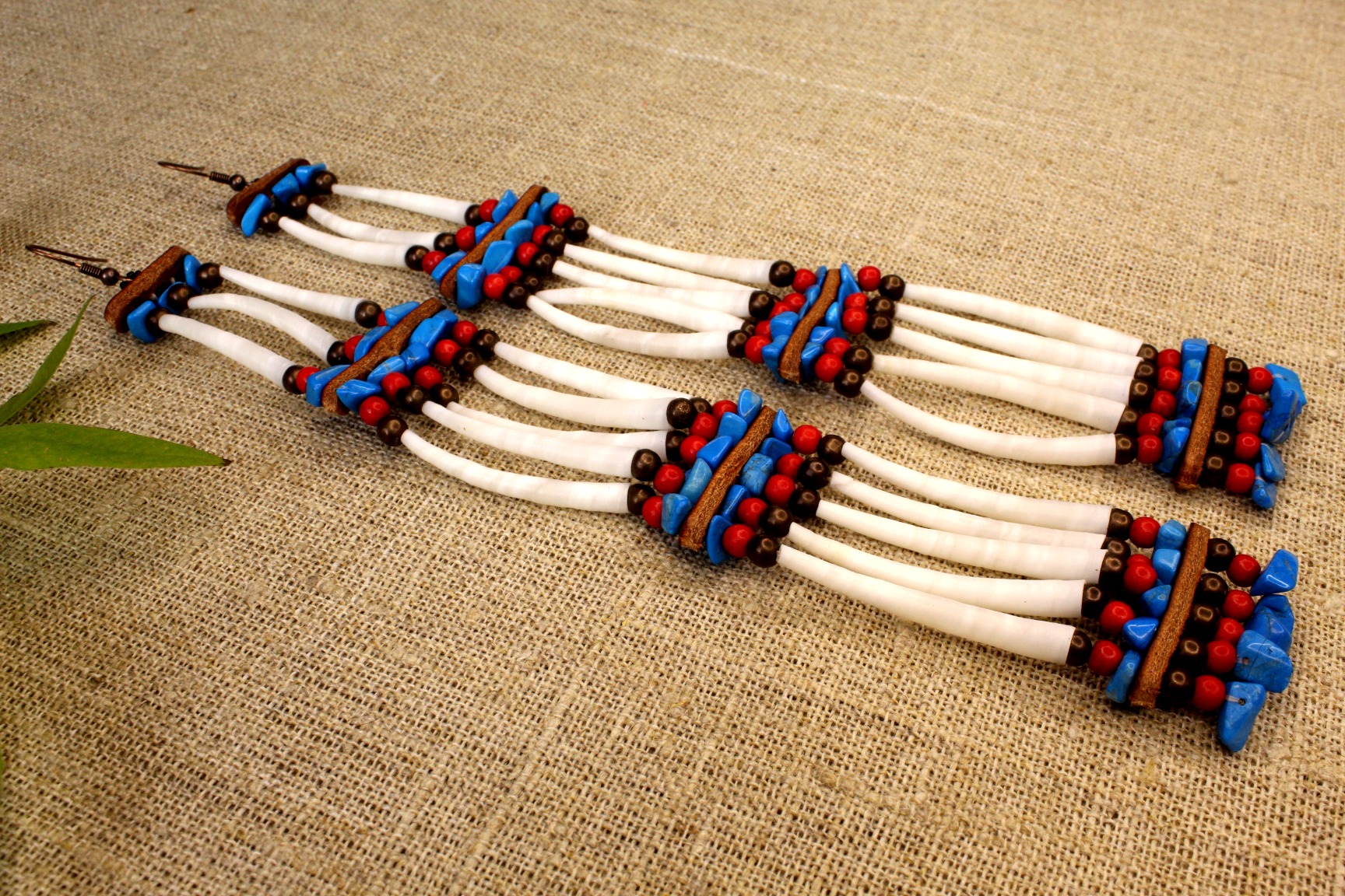 Traditional native style dentalium shell earrings. Measures with hook 19×3 cm.