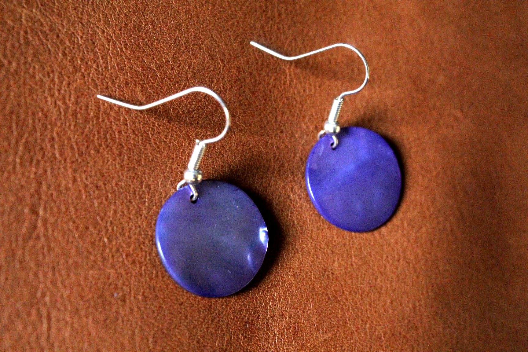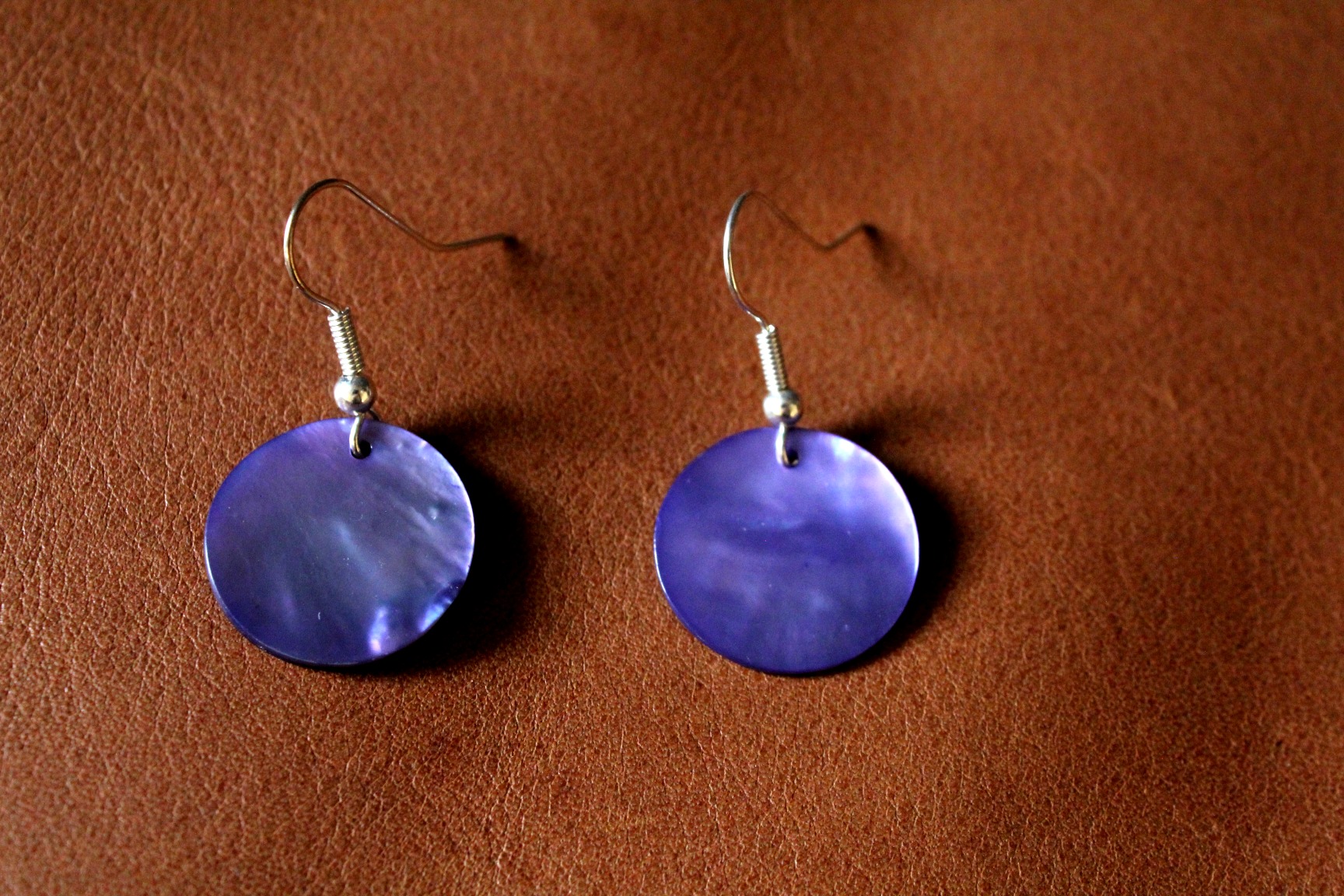 Traditional violet tinted mother-of-pearl shell earrings 2×2 cm.