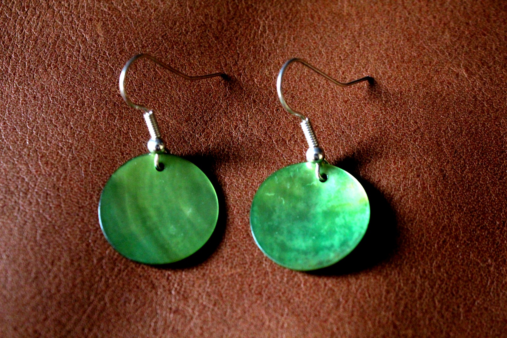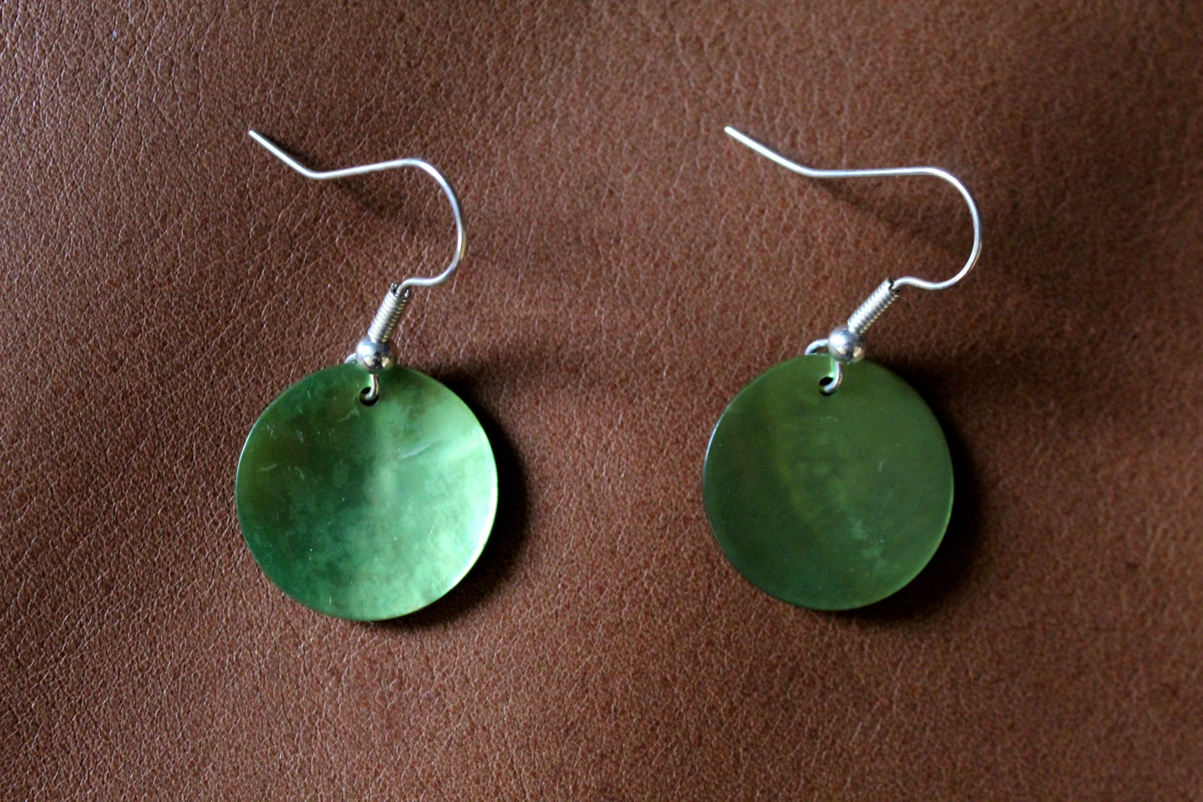 Traditional green tinted mother-of-pearl shell earrings 2×2 cm.
