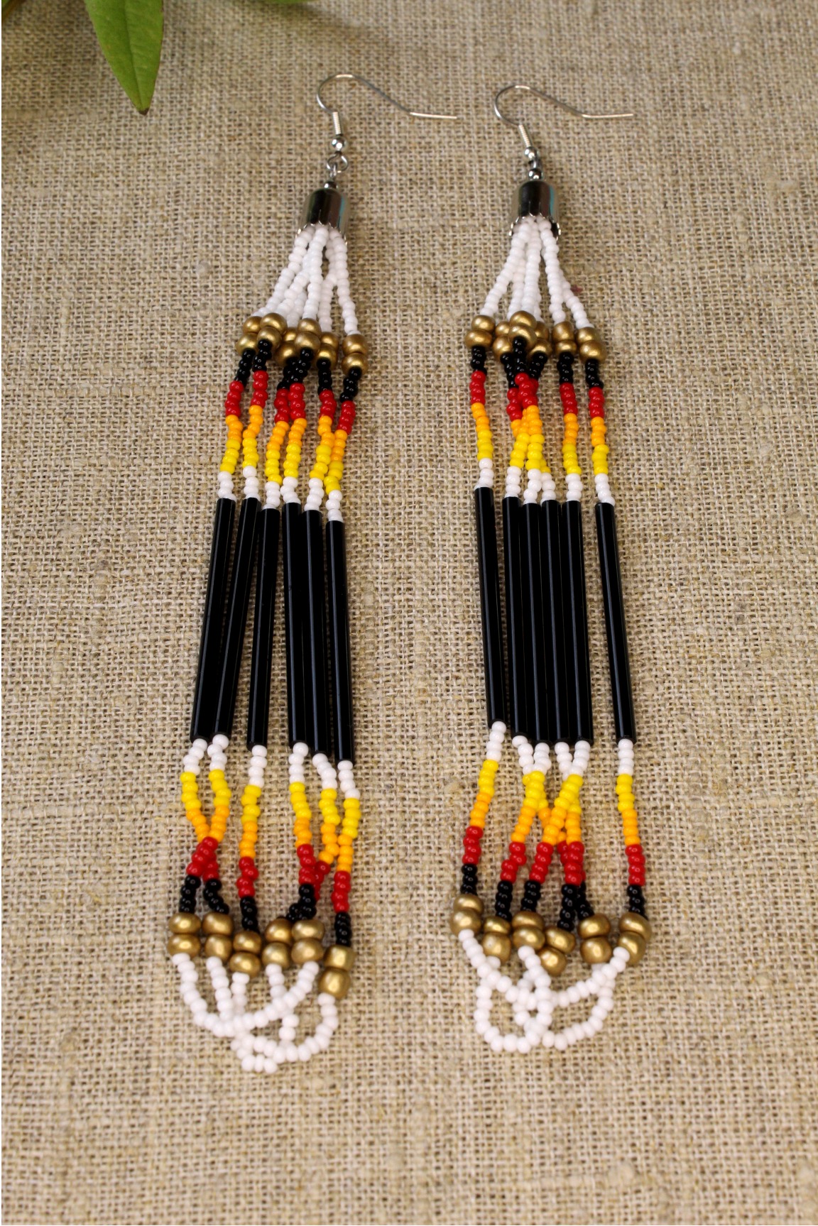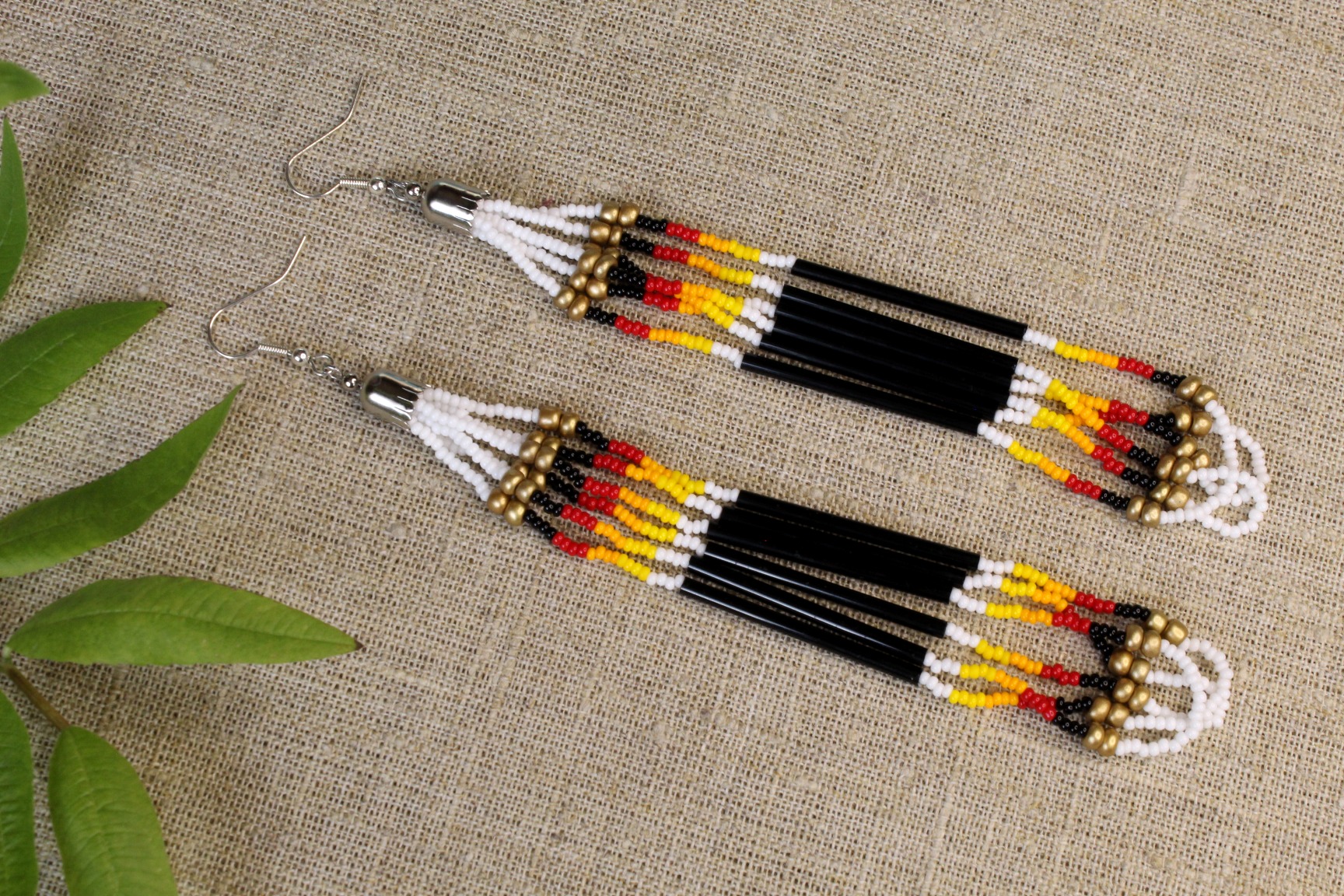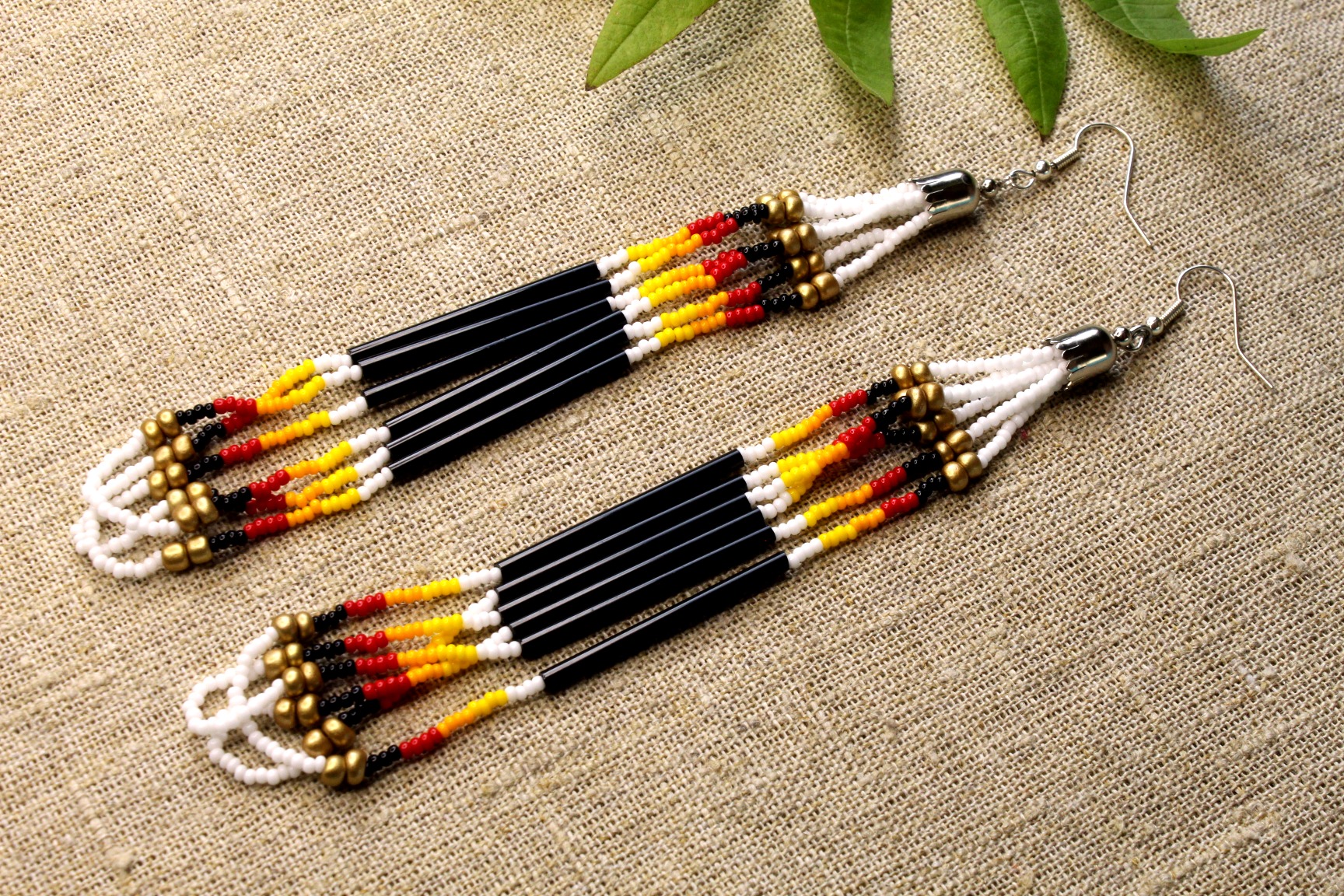 Native American style earrings, handmade with traditional beads. Perfect for everyday wear or special occasions like ceremonies, festivals, or family gatherings. Measure with hook 17 cm
