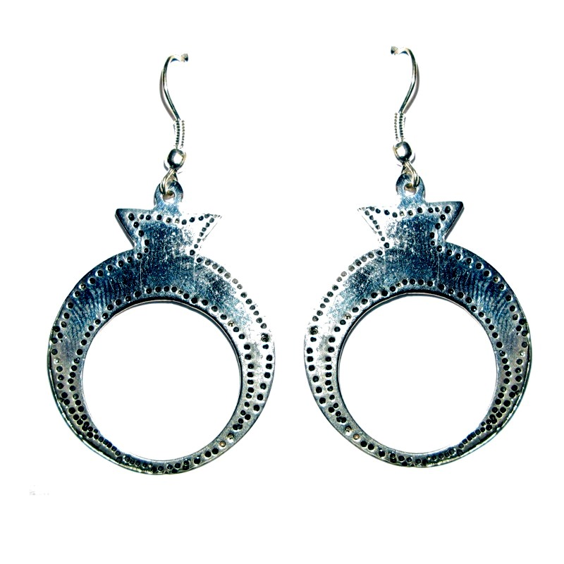 Based on originals, South Cheyenne, circa 1860. Alpaca sheet decorated with dot engraving, stainless steel earring hooks. Hookless height about 33mm. Small individual deviations in the ornamentation of each individual piece, because they are made by hand. Shipping unit 1 pair.